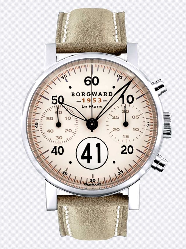 Die Chronographendrücker des Forty One 1953 Chronograph von Borgward besitzen einen integrierten Schutz. © Borgward