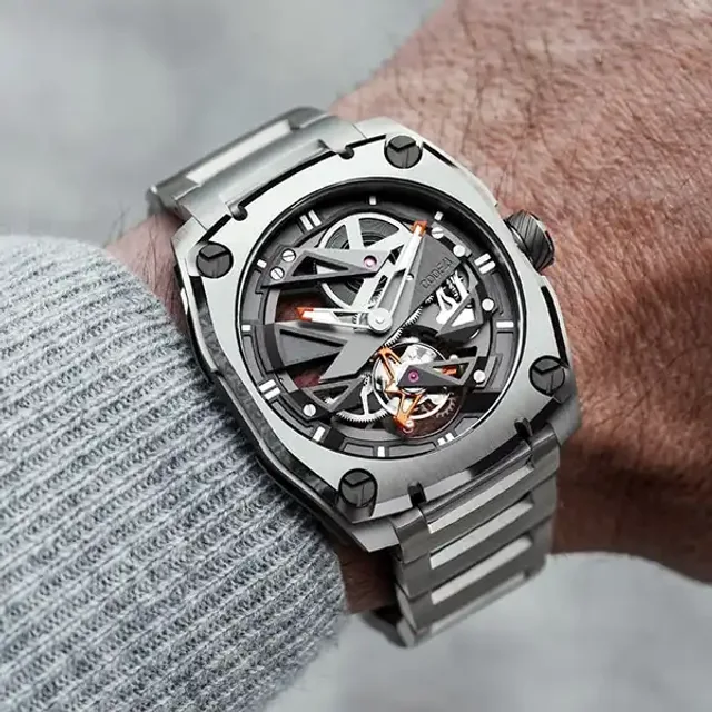 Neben dem außergewöhnlichen, vollständig skelettierten Design ihrer 141 Komponenten zeigt die T360 die Zeit in einem Gehäuse aus Titan Grad 5 durch ein entspiegeltes Saphirglas an. Die Präzision des Uhrwerks selbst ist hervorragend: Code41 gibt eine Abweichung von +5/-5 Sekunden pro Tag an. Beeindruckend. Die Uhr bietet eine Gangreserve von 105 Stunden und verfügt über leistungsstarke Incabloc-Stoßdämpfer für einen zuverlässigen täglichen Gebrauch. Und das alles schon ab CHF 10.000, ein äußerst wettbewerbsfähiger Preis angesichts ihrer bemerkenswerten Eigenschaften – und weit unter den Preisen, die normalerweise angeboten werden.
