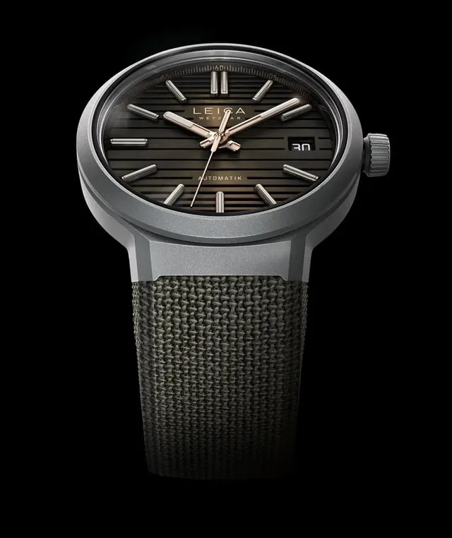 Eingebettet in ein 41 Millimeter großes, bis 100 Meter wasserdichtes Gehäuse aus Titan oder Edelstahl, folgt das neue Kaliber der typischen puristischen Ästhetik der legendären Leica-Kameras. Inspiriert von deren Objektivverriegelung sorgt das selbst konstruierte Leica Easy Change System für vielfältige Möglichkeiten, zu jedem Anlass das passende Armband zu wählen. Per Knopfdruck auf den „Red Dot“ lässt sich zwischen einem Metallgliederband aus Titan oder Edelstahl sowie einem Kautschukband bis hin zu einem Textilband variieren.
