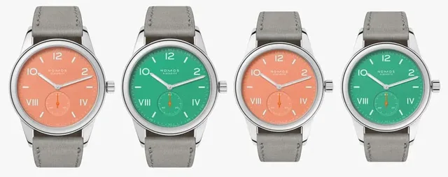 Nomos Glashütte: Club Campus cream coral und electric green in zwei Größen