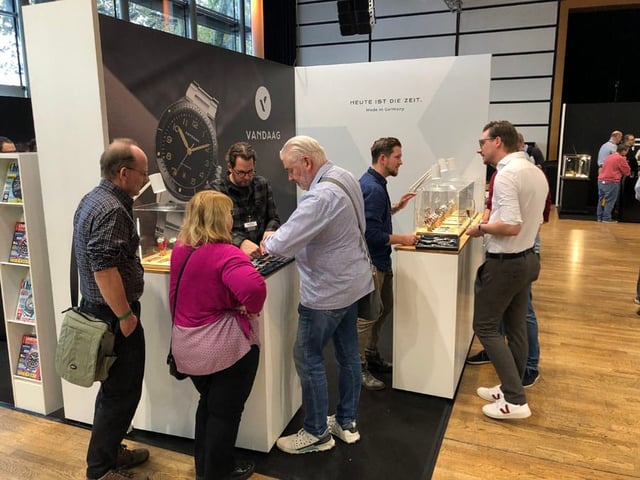 Die eigentliche Ausstellung startete um 12 Uhr und bot einen Überblick über rund 40 Marken und Unternehmen. Wie immer auf der WatchTime Düsseldorf konnten die Besucher alle Uhren in die Hand nehmen, fotografieren und die Markenvertreter über ihre Modellpolitik und Firmenstrategien befragen. In vielen Fällen sind die Inhaber und Geschäftsführer der ausstellenden Marken persönlich vertreten und informieren die Besucher über ihre Unternehmen.