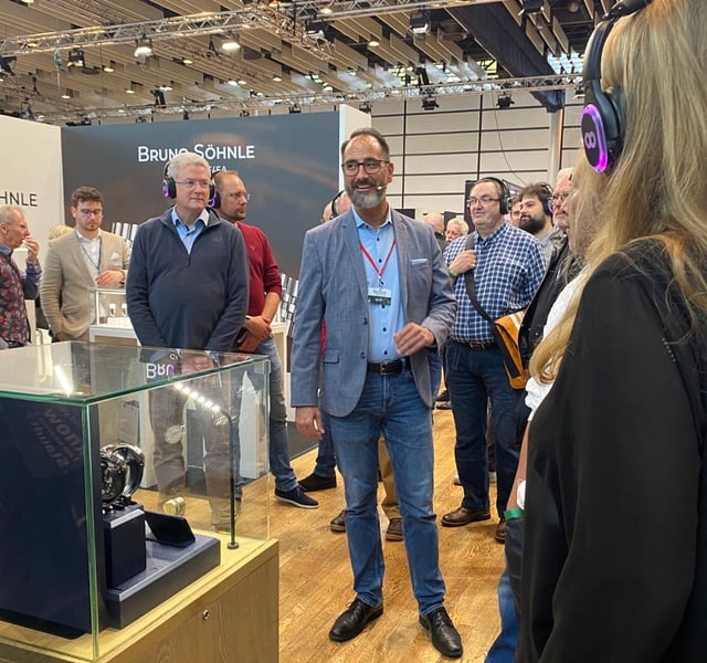 Das Rahmenprogramm des ersten Tages begann um 14 mit einer redaktionellen Führung durch die Ausstellung, in der alle präsentierten Marken mit den wichtigsten Informationen zur Kollektion und der Firmenphilosophie beleuchtet wurden. In entspannter Atmosphäre erkundeten rund 20 vorangemeldete Teilnehmer zusammen mit Chronos-Redakteur Alexander Krupp die vielseitige Ausstellung.