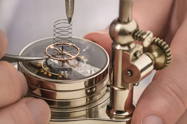 Der Besuch bei Montblanc führt uns ins Juradörfchen Villeret, in die ehemalige Fabrik von Minerva. Hier entwickelt und produziert Montblanc seine feinen Manufakturkaliber. Zu den Highlights gehören die Fertigung eigener Spiralfedern, die vor Ort auch zu Breguet-Spiralen hochgebogen werden. Und man kann auch selbst Hand anlegen und sich an Werkverzierungen wie einer Perlage erproben.