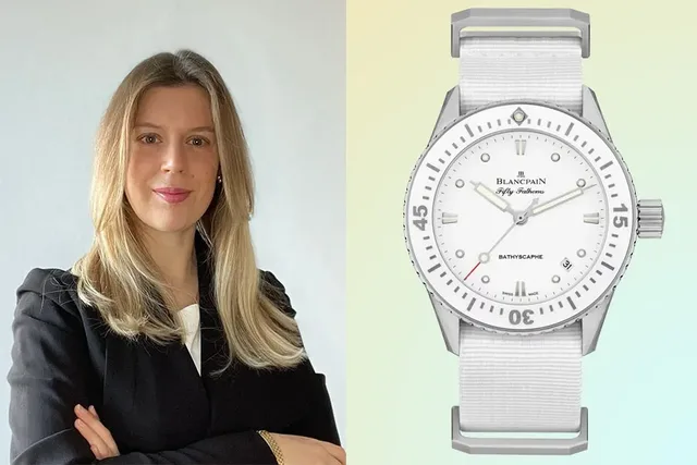 "Sommerzeit bedeutet für mich auch der Wechsel zu mehr weißer Kleidung und den passenden Accessoires. Mit ihrem weißen Zifferblatt strahlt die Referenz 5100 1127 NAWA (aka Blancpain Fifty Fathoms Bathyscape 38 mm) eine frische und luftige Ästhetik aus, die hervorragend zu heller Kleidung passt. Mit einer Gehäusehöhe von nur 10,8 mm liegt die Uhr flach am Handgelenk. Das Nato-Band, das perfekt zum Zifferblatt passt, verleiht der Uhr einen sportlichen und doch raffinierten Touch. Die Uhr misst 38 Millimeter Durchmesser, die einseitig drehbare Lünette aus satiniertem Stahl kommt mit Keramikeinlage und Indizes aus Liquidmetal. Im Inneren ist das Kaliber 1150 verbaut, das eine Gangreserve von 100 Stunden verantwortet. Die Uhr kostet 10.200 Euro."