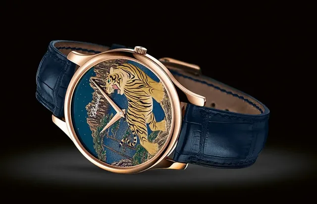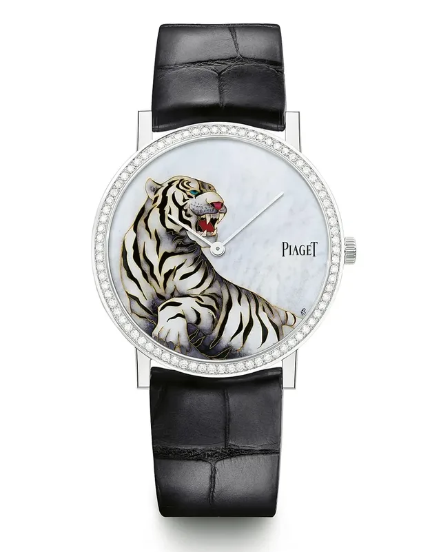 Bereits zum zehnten Mal lanciert Piaget eine Armbanduhr, die im Zeichen des Chinesischen Horoskops steht. In diesem Jahr hat die Marke mit der bekannten Emaille-Meisterin Anita Porchet zusammengearbeitet. Bei dem auf 38 Stück limitierten Modell in Weißgold wird der Tiger mithilfe der altüberlieferten Cloisonné-Technik dargestellt.