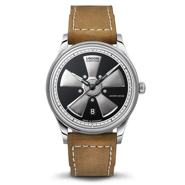 Diese Uhr ist eine Hommage an die enge Verbindung von Union Glashütte zu den Protagonisten der Oldtimer-Rallyes. Die 40 mm-große Uhr kommt mit Edelstahlgehäuse. Das elegante Zifferblatt ist mit Retro-Indexen versehen, deren Spitzen weiß gedippt sind, um eine bessere Ablesbarkeit zu gewährleisten. Das Zifferblatt wird durch kleine Verschraubungen ergänzt, die an Radmuttern erinnern.Durch eine 3D-Wirkung tritt die matte Felge kontrastreich aus dem hochglanzpolierten schwarzen Zifferblatt heraus und verleiht der Uhr eine einzigartige Optik. Die Superluminova-Beschichtung ist grünlich eingefärbt und betont den nostalgischen Charakter der Uhr. Das gewölbte Saphirglas und die feine Lünette unterstreichen die klassische Optik.