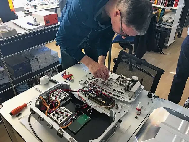 Wie beim Projekt AMC treffen in den Werkstätten von Urwerk Welten aufeinander – konventionelle Maschinen zur Herstellung mechanischer Uhrwerke und das Hightech-Innenleben der Atomuhr. © PR