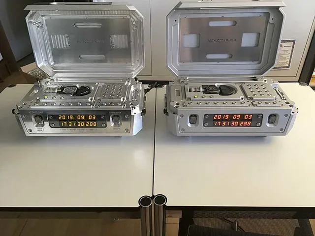 Zeitgleich: Die beide Atomuhren zeigen die gleiche Zeit. Die tausendstel Sekunde können weder Auge noch Kamera erfassen © PR