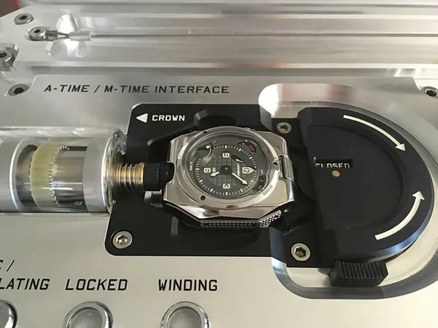 Während die automatische Gangregulierung ein ungewöhnlicher Prozess ist, funktioniert die Synchronisation von Sekunden und Minuten ähnlich der Nullstellung eines Chronographen. Sie wird ebenfalls durch einen von der Atomuhr betätigten Drücker ausgelöst. Dadurch treffen zwei Federanker im Uhrwerk auf zwei herzförmige Exzenternocken, die so kalibriert sind, dass sie die entsprechenden Zeiger in Nullstellung und den Stundenzeiger in die nächste Position einer vollen Stunde bringen.