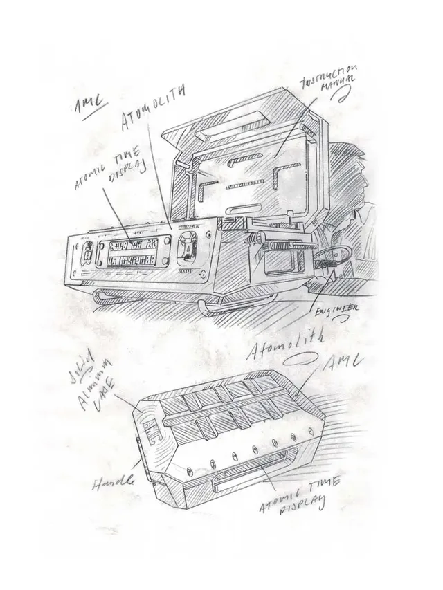 System 1, die Mutteruhr, ist ein sogenannter Atomolith, eine 45 mal 30 mal 18 Zentimeter große und 35 Kilogramm schwere Atomuhr in einem Aluminiumgehäuse – etwa in der Art eines Aktenkoffers, wie man ihn aus dem Geschäftsleben kennt, nur eben etwas schwerer. In der Schweiz werden jährlich einige Tausende solcher Atomuhren in industrieller Serienproduktion gefertigt. Bei Spectratime – daher stammt auch der Atomolith für das Projekt AMC.