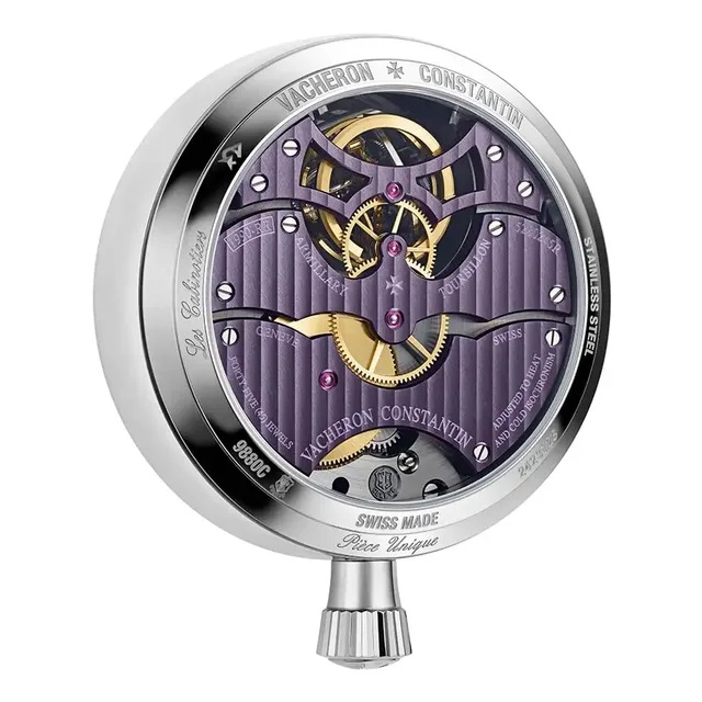 Im Gegensatz zur flachen Unruhspirale ist die zylindrische Unruhspirale – ein heute nur selten anzutreffender Mechanismus – ein weiteres technisches Merkmal des Uhrwerks dieser Uhr. Diese 1814 von Jacques-Frédéric Houriet erfundene Unruhspirale ohne Endkurve ermöglicht dem Tourbillon eine konzentrische Bewegung, die für mehr Präzision sorgt. Um die Impulse, die einer Frequenz von 18.000 Schwingungen pro Stunde (2,5 Hz) entsprechen, auf diese Unruhspirale zu übertragen, hat Vacheron Constantin eine Hemmung mit Materialien entwickelt, die weniger Reibung verursachen. Dazu besteht das Hemmungsrad aus Silizium und einem Anker mit diamantenen Paletten.